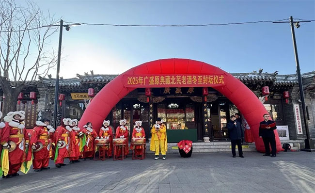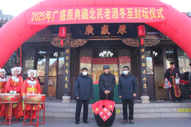 乙巳年冬至,大同古城鼓楼东街,广盛原中医药文化博物馆前,一场承载着四百四十五年历史与人文精神的“广盛原北芪老酒冬至封坛典藏仪式”在此隆重举行。这不仅是一场酒的封存,更是一场跨越四百四十五年历史的中医药活态文化传承。
