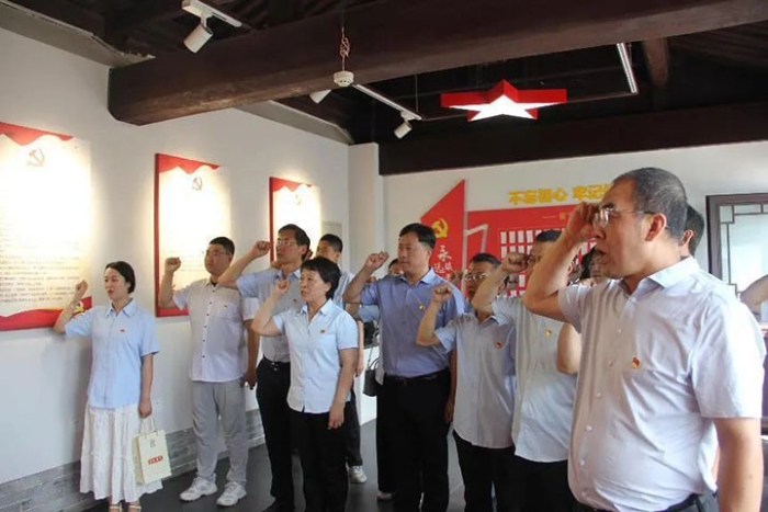在参观展厅完毕后,每一位党员面对庄严党旗,一同高举右手,重温入党誓词,一字一句,体现着对党的热爱与忠诚,激励大家在新征程上勇担使命,树立榜样,终身履行党员义务。