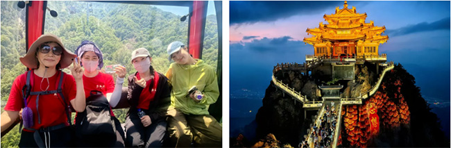 第二站,游览国家5A级旅游景区、峰林仙境、十里画屏——老君山,道教主流全真派圣地,位于河南省洛阳市栾川县城东南三公里处,老君山是秦岭余脉八百里伏牛山的主峰,海拔高达2200余米。被道教尊称为太上老君的李耳(即老子)曾在此山修炼,唐太宗因此将景室山改名为老君山,观老子文化苑、亚洲最高老子铜像、崇玄馆、三重太极合广场,乘座景区中灵索道登老君山领略八百里伏牛山主峰,参观中天门、道德府、金顶等景区。晚上观看老君山夜景,夜色笼罩下的老君山金殿,金光闪闪,比起白天的庄严肃穆,多了几分朦胧与梦幻。大家登上山顶纷纷感叹老君山在仙云雾绕中的美景和大自然的鬼斧神工。