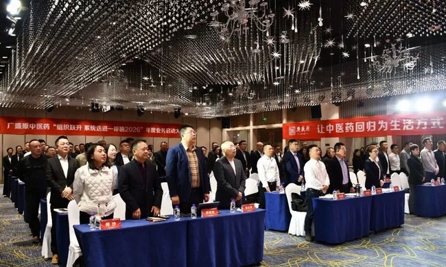 乙巳辞旧序,丙午启新程。乘中医药产业高质量发展之东风,应行业创新升级之大势,广盛原中医药有限公司以“组织跃升、系统迭进,厚植 2026” 为核心主题,隆重召开年度业务启动大会。全体省总精英、业务铁军聚首一堂,以战略谋局定方向,以机制共建强根基,以策略落地促实干,以军令立心启新程,全方位擘画 2026 年发展蓝图,凝聚起推动公司高质量发展、助力中医药产业发展的磅礴力量。